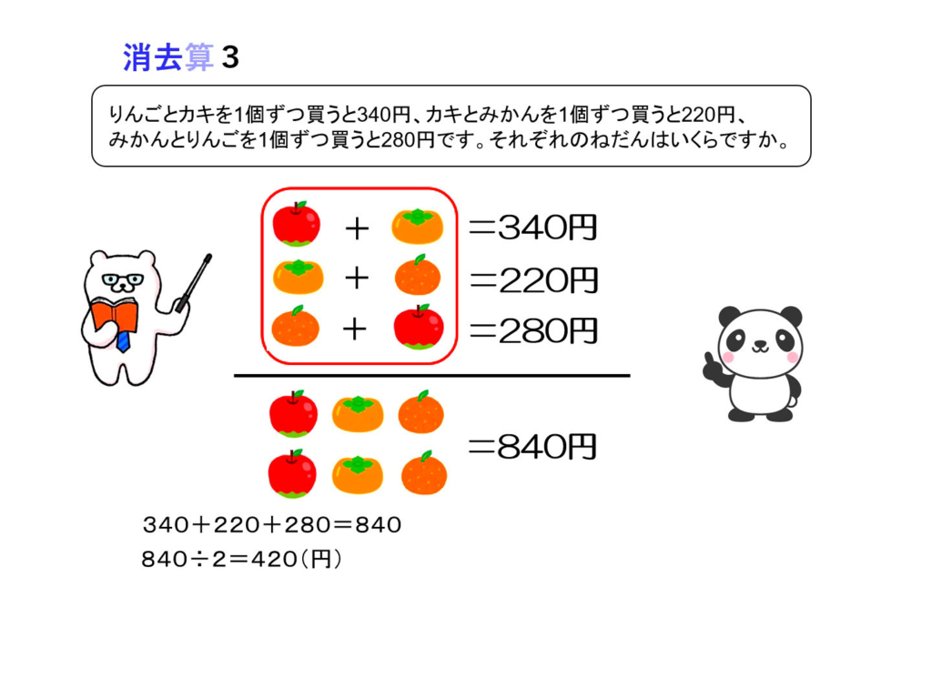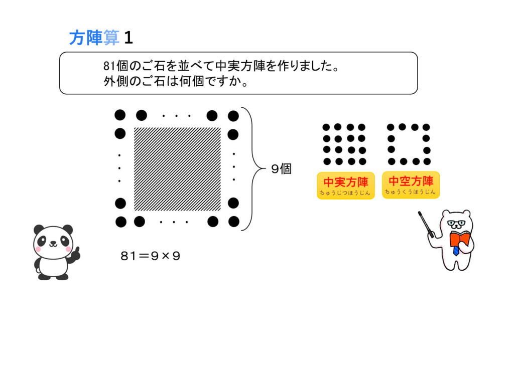 和差算・消去算・植木算・つるかめ算・年れい算・規則性・方陣算・差集め算・旅人算・おまけが各3題ずつとなっております。